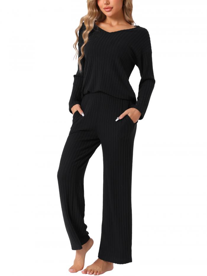 | cheibear レディース ラウンジ リブニット Vネック 長袖 パンツ付き パジャマ カジュアル スリープウェア パジャマセット 黒 XL 価格: 円 詳細を見る |